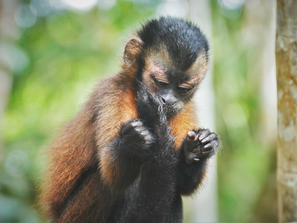 Una comunidad es un centro de rehabilitación y reinserción de micos rescatados y fauna silvestre víctimas del tráfico ilegal.